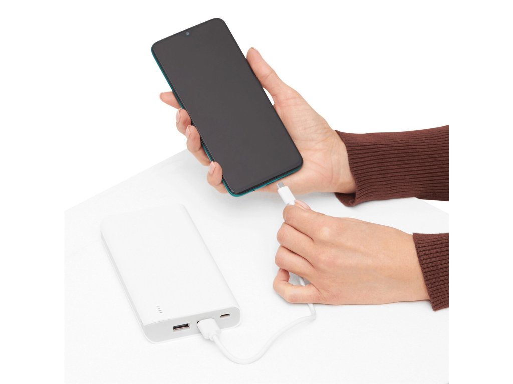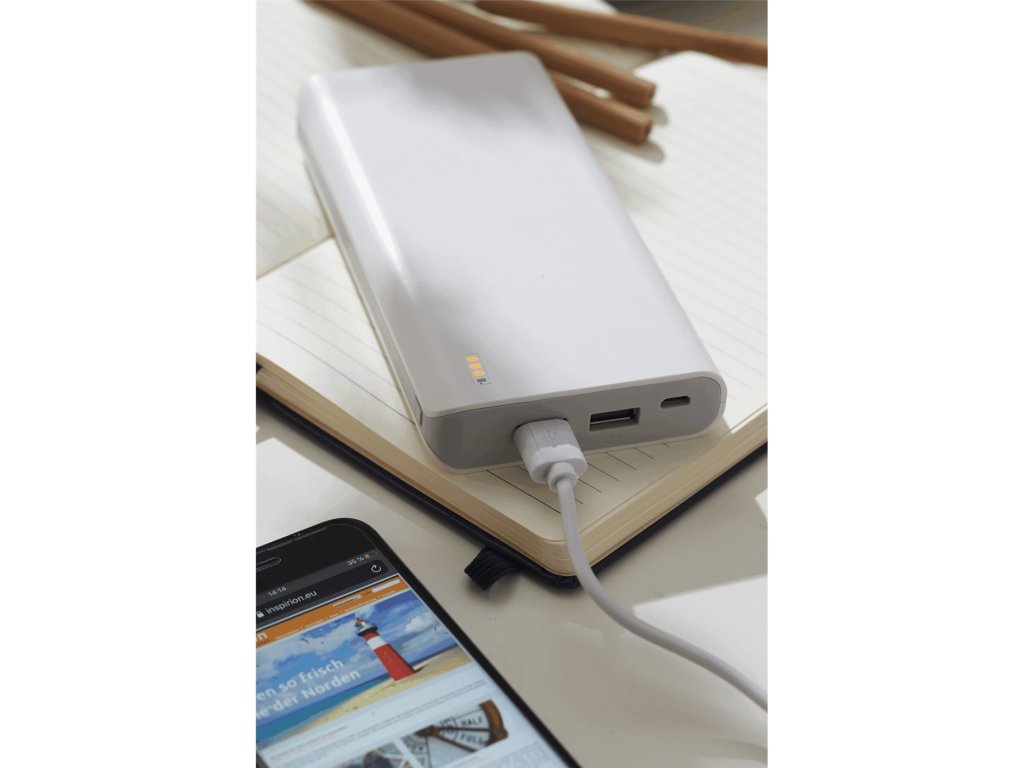 Bílá s tmavě šedým logem Mensa Česko, kapacita: 20 000 mAh