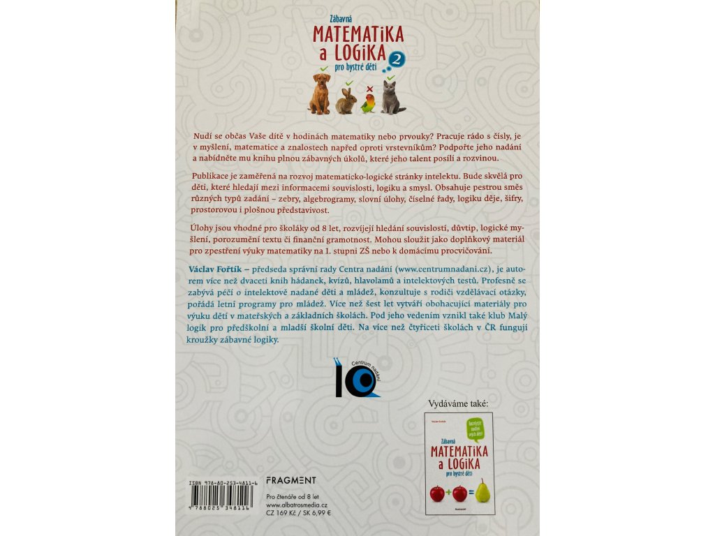 Již druhý sešit zaměřený na rozvoj matematicko-logické stránky intelektu je tady! Užijí si ho děti, které hledají mezi informacemi souvislosti, logiku a smysl. Obsahuje pestrou směs různých typů zadání – zebry, algebrogramy, slovní úlohy, číselné řady, logiku děje, šifry, prostorovou i plošnou představivost. Úlohy jsou vhodné pro školáky od 8 let. Dají se využít jako zpestření školní výuky nebo k domácímu procvičování.